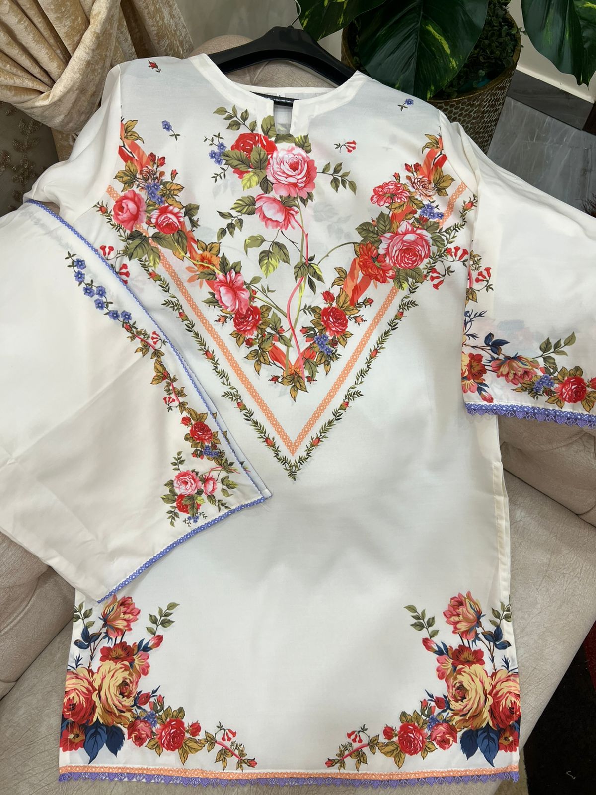 Upgrade your wardrobe with this stylish 2-piece stitched co-ord set, featuring a digitally printed shirt and trouser crafted from premium China Swiss Crepe Lawn. Designed for both comfort and elegance, this outfit is perfect for casual wear and semi-formal gatherings.