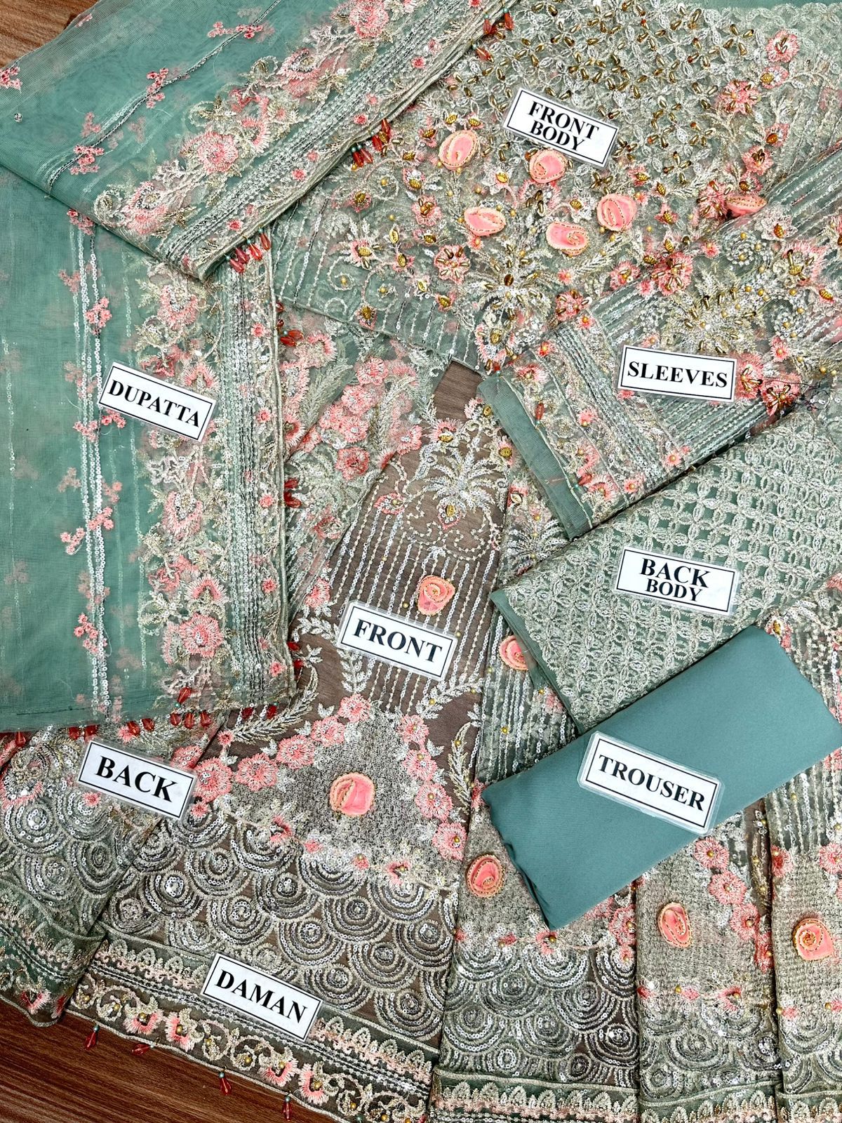 Exquisite 3D floral work, adda embroidery, and elegant sequin embellishments crafted with fine detailing to give a premium designer outfit look.