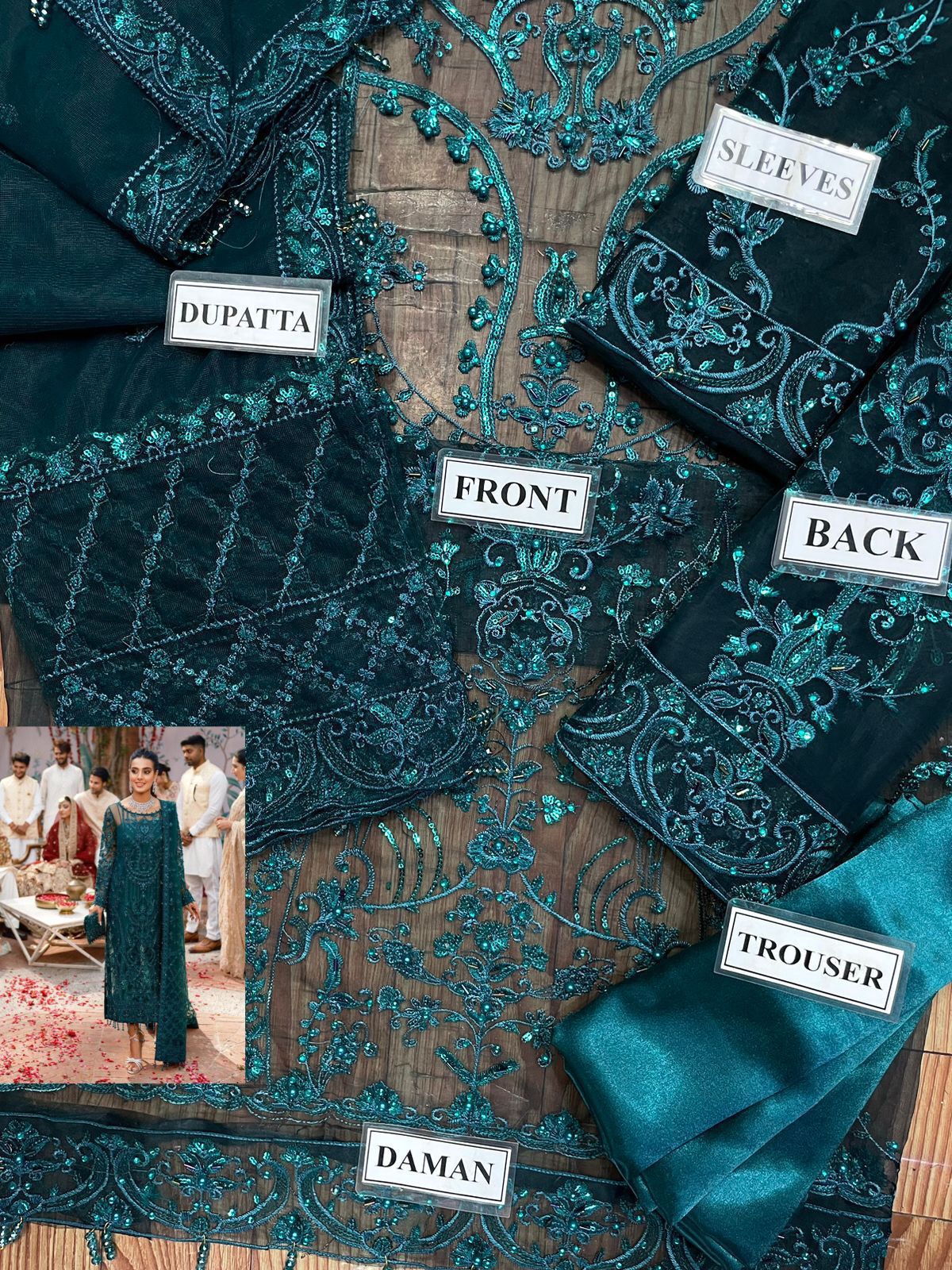 Dupatta: Net dupatta with two-side embroidered border, two-side heavy embroidered pallu, and fancy tassel attachments