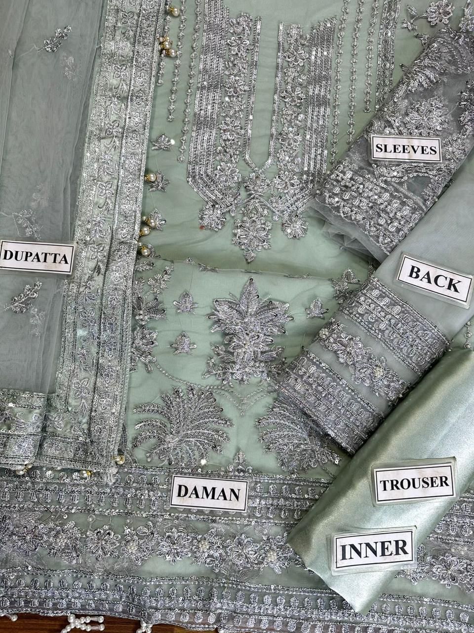Beautifully crafted with adda handwork and zari sequin embroidery, making it a perfect choice for festive, wedding, and formal wear.